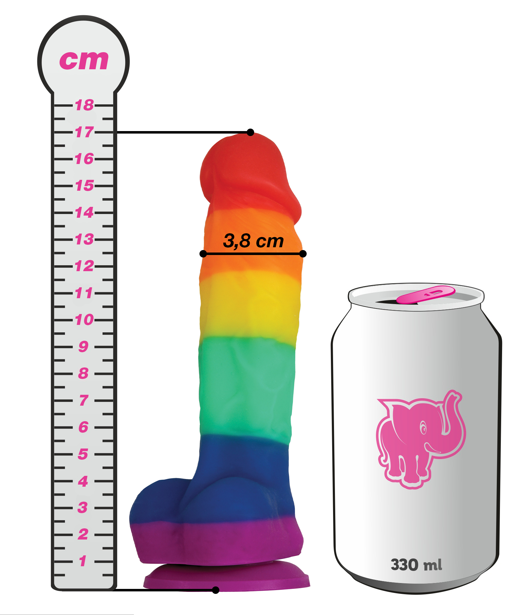 Dildo v igrivih mavričnih barvah zastave LGBT vas bo spodbudil k raziskovanju lastne spolnosti. Poželi boste željo, da se razmigate in pustite domišljiji prosto pot.
