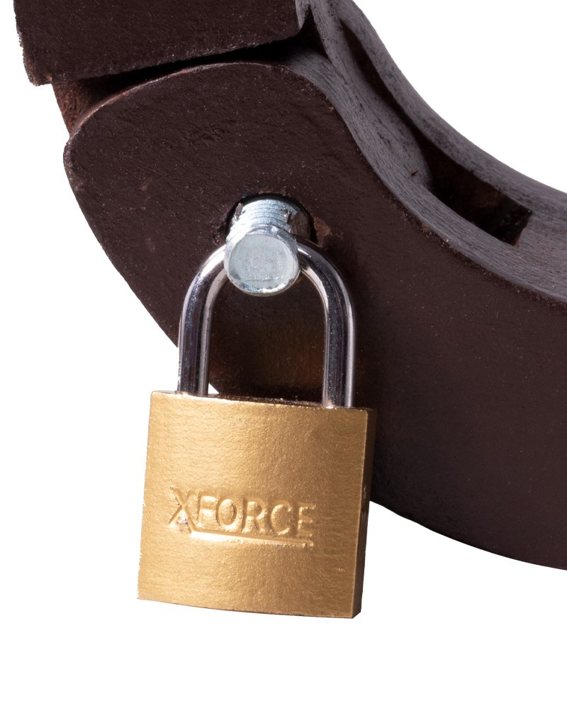 Leseni drobilec semenčic z okovi Humbler Lock bo neusmiljeno kaznoval vsakega porednega partnerja. Ta ekstremna praksa, namenjena mučenju penisa in jajc (CBT), tesno stisne sponke na testisih in zapestjih. Balansira na tanki meji med bolečino in užitkom ter okrepi podrejen položaj vsakega moškega, ki se pusti zakleniti v drobilnik.